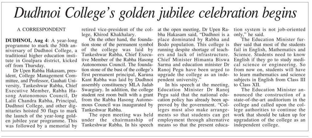 | Keywords: | Golden Jubilee Dudhnoi college |